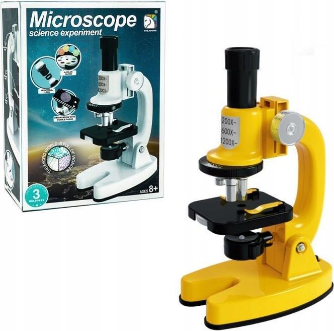 Mikroskop Mikroskop to idealny prezent dla młodych badaczy, którzy pragną zgłębiać tajemnice mikroskopowego świata. Wyposażony w trzy różne stopnie powiększenia - 200, 600 i 1200 krotne. Dzięki temu, mikroskop umożliwia eksplorację różnorodnych struktur i detali z najbliższego otoczenia. Zapewnij swojemu małemu badaczowi niezapomniane chwile odkrywania i pozwól mu zgłębiać fascynujący świat mikroskopowych detali z pomocą tego wyjątkowego mikroskopu. Dodatkowo do mikroskopu są zainstalowane 4 filtry koloru - zielony, niebieski, żółty, czerwony. Można wybrać odpowiedni kolor do obserwacji próbki, aby uzyskać różne efekty obserwacji. W zestawie jest także uchwyt do telefonu, dzięki temu można zrobić zdjęcie obserwowanej próbki. Zasilanie: 2 x AA (brak w zestawie) Różne wzory. Produkt wysyłany losowo, brak możliwości wyboru konkretnego modelu. Cena dotyczy 1 sztuki. Informacje o produkcie Nr katalogowy 124582 Obszar Edukacyjne Rodzaj Mikroskop Wymagania wiekowe od 8 lat Materiał Tworzywo sztuczne (plastik) Płeć Chłopcy Dziewczynki Produkt na baterie Tak Baterie w zestawie Nie Zasilanie Baterie/akumulatory AA Akcesoria w zestawie Uchwyt do telefonu Pozostałe parametry Wymiary opakowania: 20,5 x 9,5 x 27,5 cm Oznaczenia