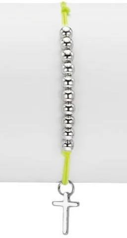 Bransoletka - różaniec, na sznurku - kolor zielony Regulowana bransoletka z dziesiątką różańca i krzyżykiem. Materiał: sznurek, metal antyalergiczny Wielkość koralika: 4 mm