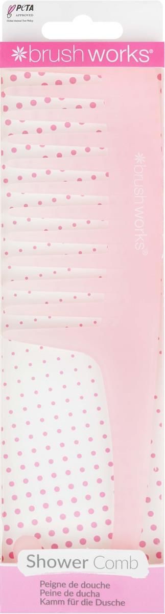 Brushworks Shower Comb, 1 szt., Grzebienie dla kobiet, Chcesz zawsze mieć kontrolę nad swoimi włosami i ich stylizacją? W Twojej kosmetyczce nie powinno zabraknąć grzebienia do włosów Brushworks Shower Comb . Jest on niezastąpionym przyborem podczas codziennego układania włosów i przy bardziej skomplikowanych stylizacjach. Zapewnia korzyści, które doskonale uzupełniają okrągłe i płaskie szczotki oraz inne akcesoria do stylizacji włosów. Umożliwia rozczesywanie zarówno suchych, jak i mokrych włosów, a dodatkowo możesz użyć go do wykonywania przedziałków podczas strzyżenia, tapirowania oraz innych czynności podczas układania włosów. Właściwości: mocne tworzywo ma ergonomiczny kształt, co ułatwia rozczesywanie odpowiedni do wszystkich typów włosów Skład: produkt wegański Sposób użycia: Delikatnymi pociągnięciami przeczesuj włosy. Od nasady aż po końce. Możesz użyć także do równomiernego rozprowadzania maski lub innych produktów do pielęgnacji włosów. Można stosować na suche i mokre włosy.