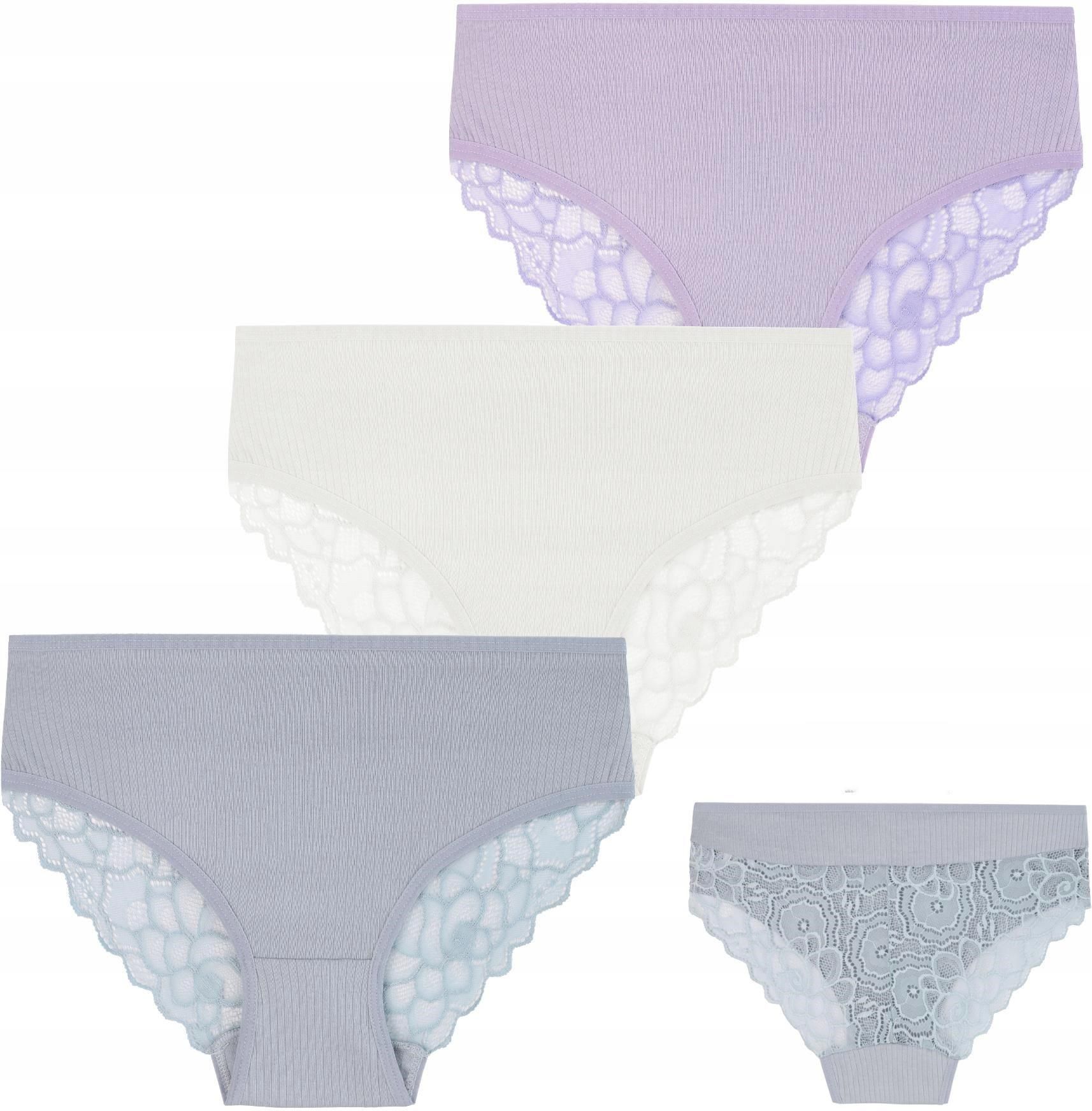 Figi Majtki Damskie Prążkowane z Koronkowym Tyłem 3-szt KOLOROWE MORAJ S Środa Wielkopolska