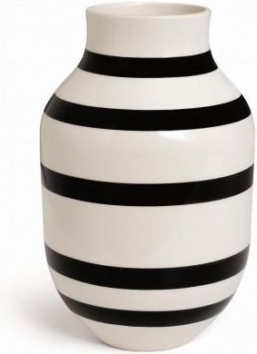 Wazon Omaggio wykonany z białej ceramiki w paski koloru czarnego. Omaggio to prawdziwy znak rozpoznawczy marki Kahler Design. To wazon, który jest niezbędny w każdym domu. Ręcznie malowane paski przyciągają wzrok każdego i sprawiają, że każdy wazon jest naprawdę wyjątkowy. Te najmniejszego rozmiaru wazoniki są idealnie dopasowane do małych ogrodowych bukiecików, czy pęczków konwalii kupionych na targu lub miejskim rynku. Omaggio występują w wielu rozmiarach i kolorach i szczególnie pięknie wyglądają w różnorodnych zestawieniach. Wazony Omaggio wykonywane są ręcznie z naciskiem na wysoką jakość produktu. W związku z ręcznym wykonaniem, każdy produkt jest unikalny i dlatego mogą występować niewielkie różnice między poszczególnymi egzemplarzami. Nie są przeznaczone do mycia w zmywarce. Kolor czarny. Materiał: ceramika. Wymiary: wysokość 30,5 cm x średnica 19,5 cm. Produkt oryginalny marki Kahler Design. Idealny na prezent dla fanów duńskiej klasyki.