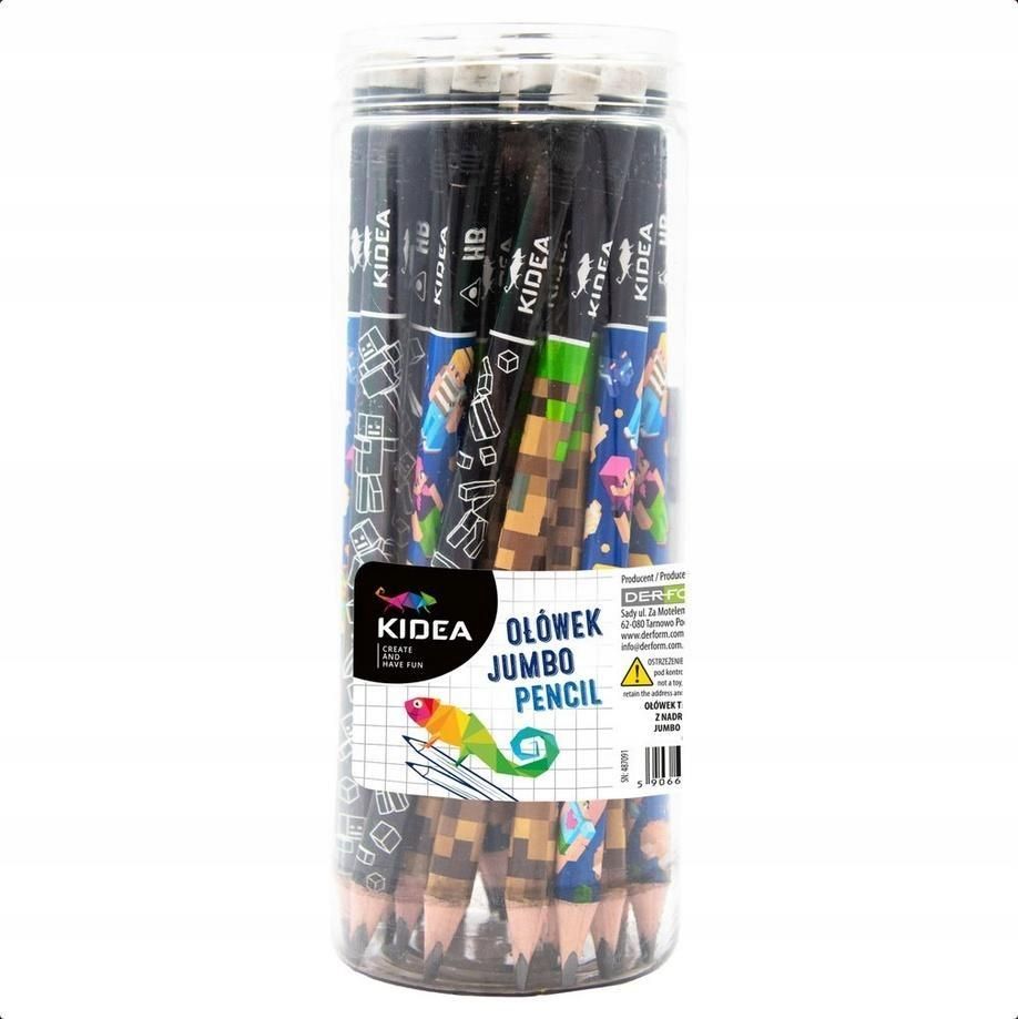 Ołówek trójkątny jumbo z nadrukiem A KideaTrójkątny ołówek jumbo Kidea z kolorowym nadrukiem został zaprojektowany z myślą o najmłodszych użytkownikach. Grubszy korpus i ergonomiczny kształt ułatwiają prawidłowe trzymanie i naukę pisania.Specyfikacja:Rodzaj: ołówek grafitowyKształt: trójkątnyRozmiar: jumboDodatki: kolorowy nadruk - pixeleZastosowanie: nauka pisania i rysowaniaMarka: KideaProducent: DerformKod producenta: OTJNAKAOpis:Ołówek jumbo Kidea jest idealny dla dzieci rozpoczynających naukę pisania. Trójkątny przekrój wspiera rozwój prawidłowego chwytu, a gruby korpus dobrze leży w małej dłoni. Wesoły nadruk zachęca do codziennego używania, a solidny grafit pozwala na płynne rysowanie i pisanie.Informacje dodatkowe:Produkt przeznaczony dla dzieci powyżej 3. roku życia. Dostępny w różnych wersjach graficznych – wzór wysyłany losowo. Cena za jedną sztukę.