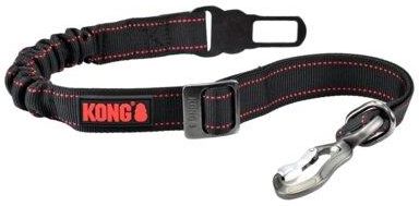 KONG Travel Deluxe Swivel Tether to amortyzowany pas do samochodu dla psa, do przypięcia do pasów bezpieczeństwa. Zapobiega niekontrolowanemu przemieszczaniu się zwierzęcia wewnątrz auta, podczas jazdy i hamowania, bo przytrzymuje czworonoga w miejscu. Amortyzator chroni zwierzę przed mocnym szarpnięciem. Wykonany jest z mocnej, czarnej taśmy nylonowej o szerokości 2,5 cm, posiada regulację długości do 56 cm. Pas z jednej strony zakończony jest metalową klamrą, a z drugiej solidnym, obrotowym karabińczykiem. Ma regulowaną długość odpowiednią dla większości marek samochodów, oprócz marki Volvo.