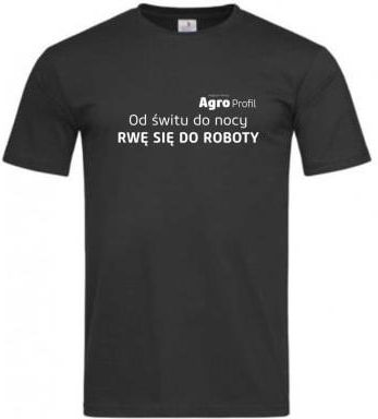 T-shirt "Od świtu do nocy rwę się do roboty" Czarna koszulka, z krótkim rękawem, wykonana w 100% z bawełny. Dostępna w rozmiarach M – 3XL. Nadruk dobrej jakości, nie pęka i jest odporny na pranie i ścieranie, w kolorze białym. Dekolt koszulki jest okrągły. Koszulka bardzo wysokiej gramatury 185 zapewni idealną wygodę oraz komfort w użytkowaniu. Kontrastowe hasło ,,Od świtu do nocy RWĘ SIĘ DO ROBOTY” wyróżni Cię spośród tłumu.