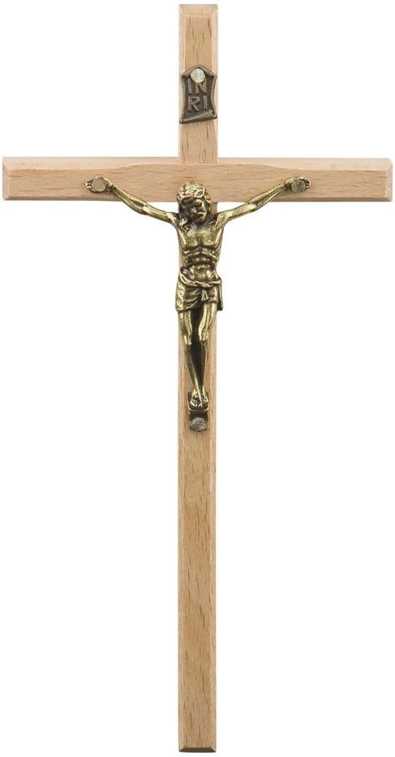 Krzyż wiszący h 120 mm, kolory naturalny. Krzyż wykonany z drewna bukowego, wizerunek Chrystusa wykonany ze stopu cynku.