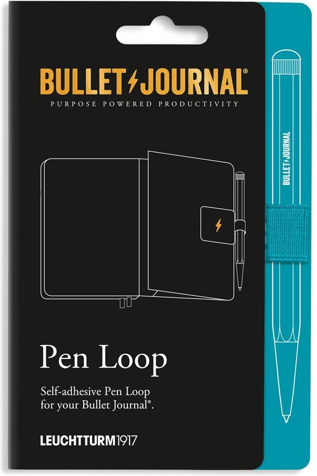 PEN LOOP X BULLET JOURNAL LEUCHTTURM1917 TURKUSOWY Samoprzylepna elastyczna pętelka. Rozmiar 40x40 mm. Wykonany z wytrzymałej gumy, utrzyma zarówno cienki ołówek , jak i grube wieczne pióro. Samoprzylepną pętlę mocuje się od wewnętrznej strony tylnej okładki. Kolor turkusowy.
