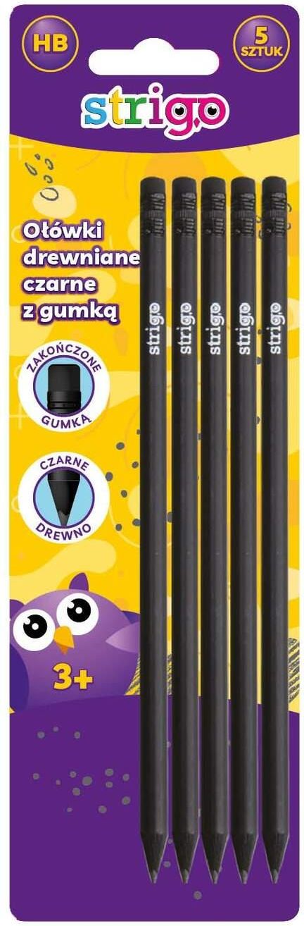 Ołówek STRIGO z czarnego drewna zakończony gumką 5 szt. Środa Wielkopolska