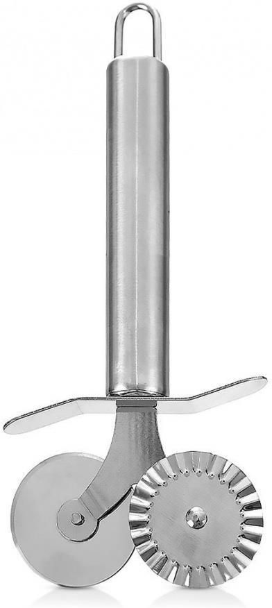 PODWÓJNE - Radełko podwójne do ciasta, makaronu, faworków, ravioli i innych. Przydatne w każdej kuchni. Radełko ma długość 17 cm a średnica ostrza wynosi 4 cm. STALOWE - Radełko w całości wykonane jest ze stali nierdzewnej w srebrnym kolorze. OSTRE - Posiada dwa ostrza tnące: jedno gładkie do prostych cięć i jedno faliste do krawędzi zygzakowatych. W ten sposób narzędzie tnie i jednocześnie uszczelnia brzegi ciasta lub ravioli. UNIWERSALNE - Radełko posiada uniwersalne zastosowanie. Sprawdzi się również do robienia: makaronów, paluszków pikantnych, paluszków chlebowych, słodyczy lub pikantnych krakersów i ciastek, a także do dekoracji ciast i tart. WYGODNE - Ergonomiczna, antypoślizgowa rączka zapewnia wygodną i bezpieczną pracę. Praktyczny otwór na krawędzi uchwytu pozwala na jego zawieszenie. Nadaje się do mycia w zmywarce do naczyń. Radełko z podwójnymi ostrzami: gładkim i falistym. Wykonane z solidnych materiałów, odpowiednio użytkowane posłuży długie lata. Radełko posiada uniwersalne zastosowanie i sprawdzi się do przygotowywania makaronów, ale również słodyczy czy nawet do dekoracji tort i ciast. Oryginalny produkt czeskiej marki Orion. Wyprodukowano zgodnie z europejskimi standardami.