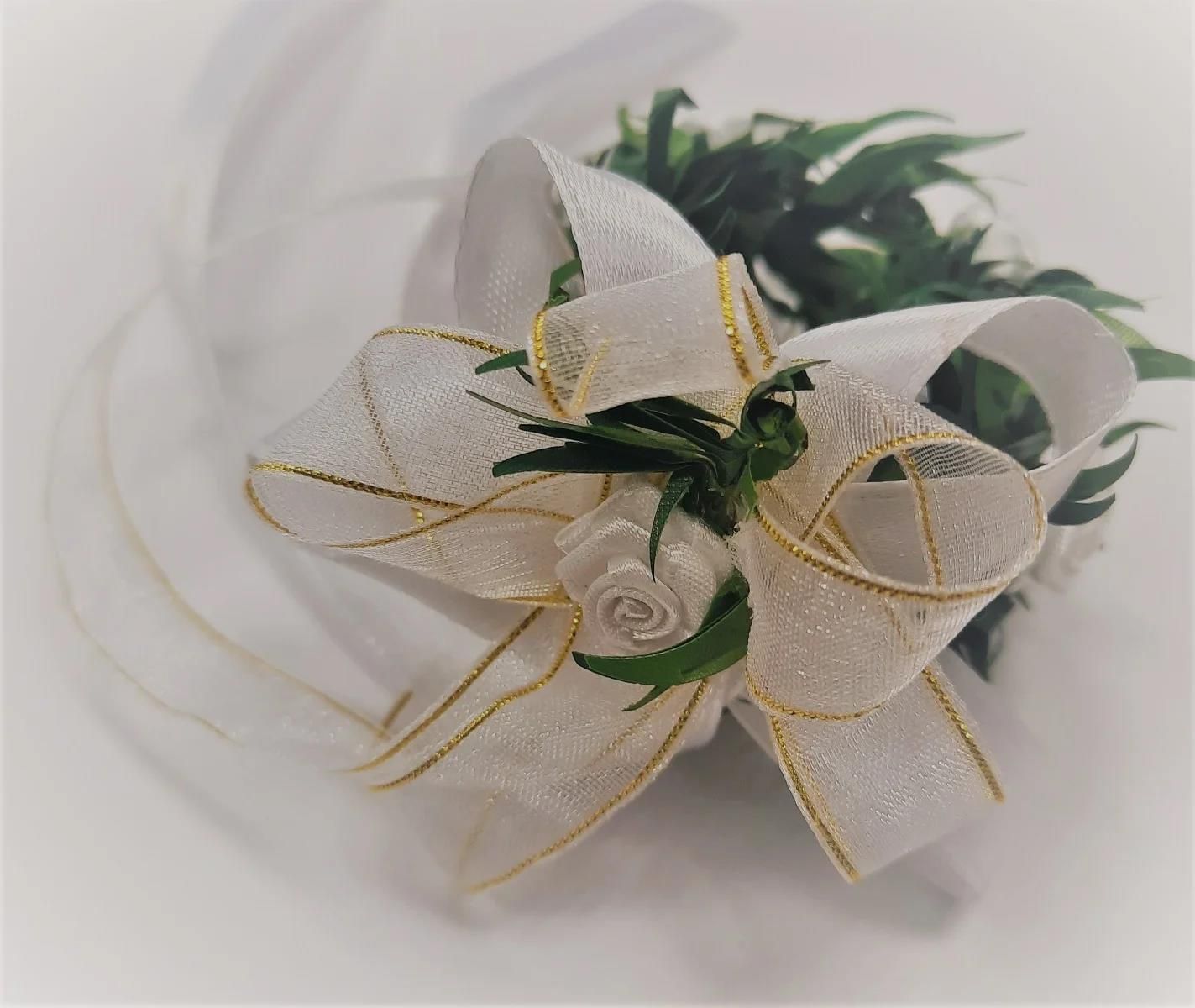 Ozdoba Na Świecę Z Białym Kwiatkiem I Białą Wstążką Ze Złotą Nitką Środa Wielkopolska