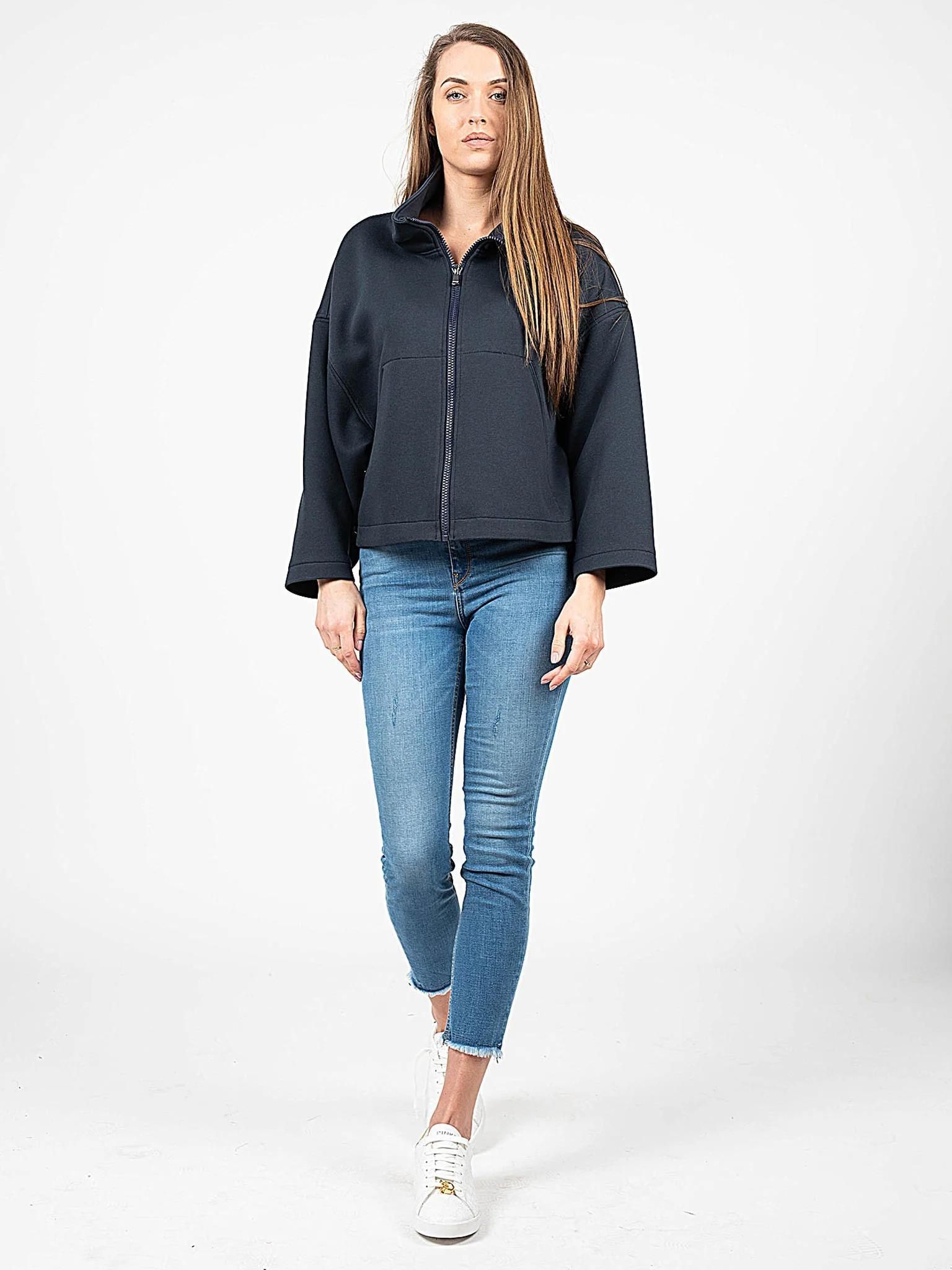 Luźny fason Ze stójką Stójka z możliwością wywinięcia Zapinana na sygnowany zamek błyskawiczny Szerokie rękawy Po bokach zapinana na logowane napy Z przodu dwie kieszenie Wykonana z wysokiej jakości tkaniny