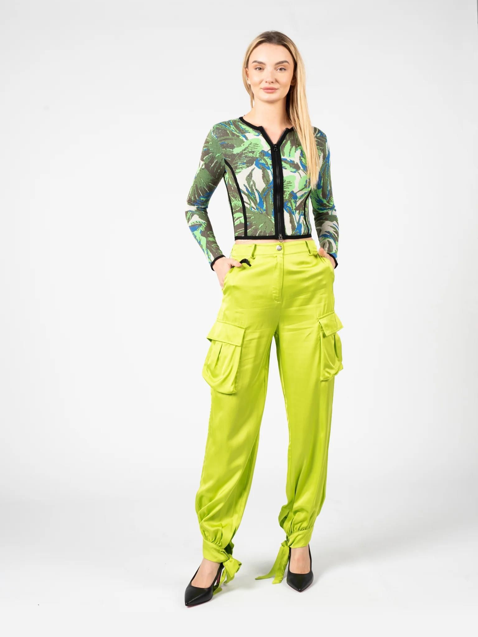 Kurtka charakteryzuje się dopasowanym fasonem, który idealnie podkreśla sylwetkę, nadając jej smukły i wyrafinowany wygląd, sprawiając, że czujesz się pewnie w każdej sytuacji. Klasyczna i praktyczna zapinana na zamek błyskawiczny umożliwia łatwe zakładanie i zdejmowanie. Dekolt okrągły został zaprojektowany tak, aby delikatnie eksponować szyję i obojczyki, co czyni go idealnym wyborem zarówno do stylizacji casualowych, jak i bardziej eleganckich zestawów. Wykonana z wysokiej jakości tkaniny, która zapewnia komfort noszenia przez cały dzień, a także jest trwała i łatwa w pielęgnacji, zachowując swój kształt i kolor na długo. Wyprodukowana we Włoszech, co gwarantuje nie tylko europejską jakość wykonania, ale także wyjątkowy design inspirowany najnowszymi trendami z włoskich wybiegów mody.