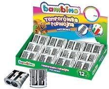 Mix wzorów, towar wysyłany losowo. Solidna i trwała, metalowa temperówka z podwójnym wyjściem. Wyposażona w wysokiej jakości ostrza strugające, wykonane ze stali nierdzewnej, mocowane przy pomocy odpornego na uszkodzenia wkrętu. Posiada ergonomiczne, rowkowane bloki, które sprawiają, że temperówka pewnie leży w dłoni i nie wyślizguje się podczas ostrzenia przyborów. Doskonała do ołówków i kredek. Wymiary: 119x95 mm Opakowanie: pudełko