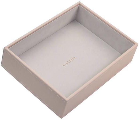 Szkatułka na biżuterię Stackers open classic jasnoróżowa Stan: Nowy Ogromną zaletą organizerów jest ich modułowość - w zależności od potrzeby możemy dołożyć kolejne piętra lub szufladki, pokrywki oraz wkładki, aby zyskać dodatkową przestrzeń na akcesoria. Angielska marka Stackers to producent stylowych akcesoriów służących do przechowywania biżuterii i porządkowania przestrzeni. Produkty są wykonane z największą dbałością o jakość, dopracowane w formie i przemyślane. Wiele z nich można łączyć ze sobą, aby dopasować je do indywidualnych potrzeb. Dzięki eleganckiej formie sprawdzą się również jako doskonały upominek.