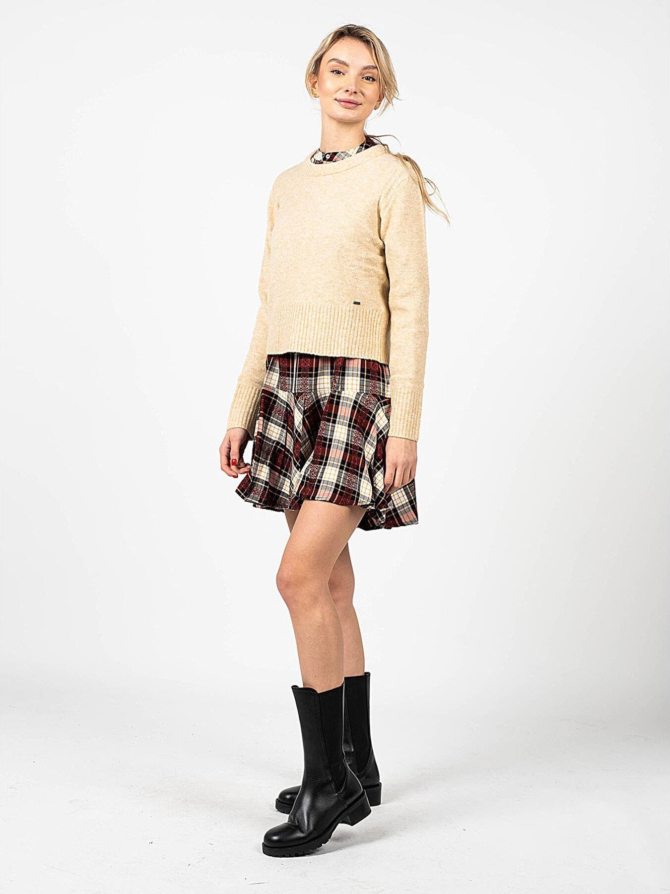 Luźny fason Krótki krój Okrągły dekolt Dekolt, rękawy i dół zakończone prążkowanym ściągaczem Z lewej strony firmowy detal Wykonany z wysokiej jakości dzianiny z domieszką wełny