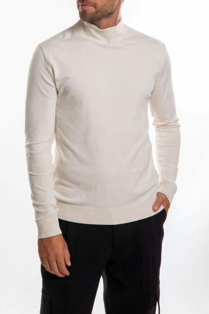 Prosty fason Z półgolfem Dekolt, rękawy oraz dół zakończone ściągaczem Przy lewym szwie firmowa naszywka Wykonany z wysokiej jakości dzianiny Wyprodukowano we Włoszech
