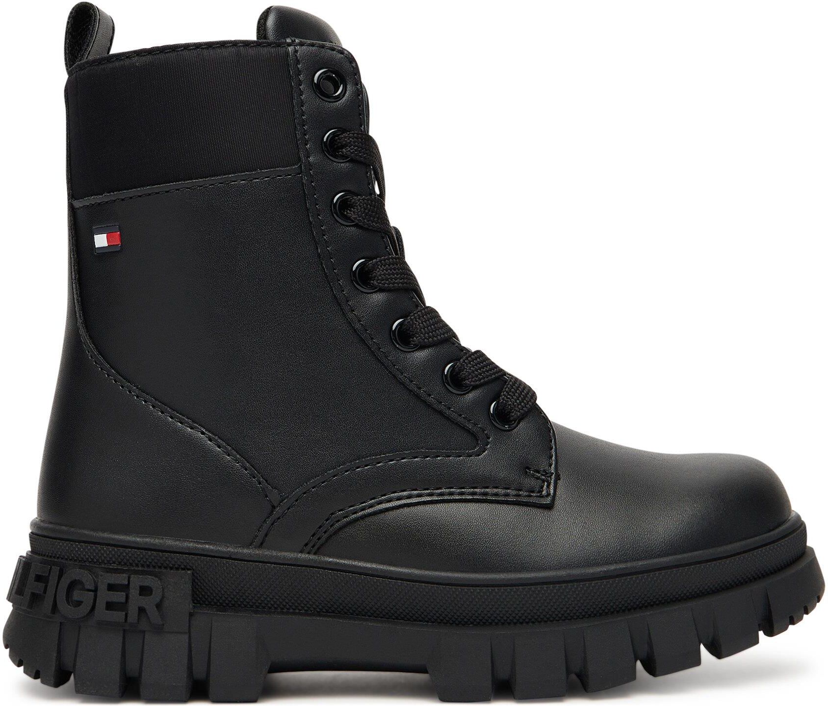 Postaw na styl i wygodę z dziecięcymi traperami marki Tommy Hilfiger! Wykonane z imitacji skóry, buty zachwycają swoją trwałością i modnym wyglądem, idealnym na co dzień i aktywne przygody. Sznurówki z materiału zapewniają doskonałe dopasowanie i łatwość użytkowania, a miękka wkładka z materiału gwarantuje komfort podczas każdego kroku. Te trapery to niezawodny wybór dla młodych odkrywców, którzy cenią sobie zarówno funkcjonalność, jak i stylowy design. Sprawdzą się w każdej sytuacji – od spacerów po plac zabaw aż po rodzinne wyjścia!
