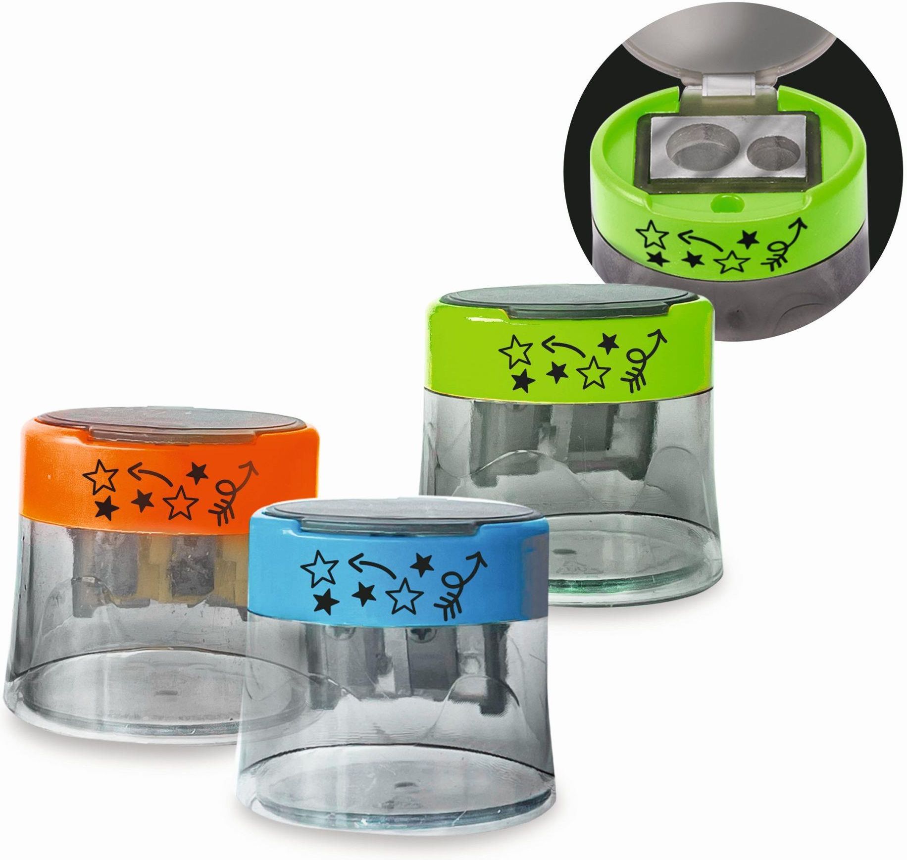 Wysokiej jakości metalowa temperówka o stylowym wyglądzie! Ta temperówka ma dwa otwory na kolorowe kredki i ołówki o różnej grubości (O 8 mm i 11 mm) oraz praktyczną pokrywkę. Zawiera wymienne metalowe ostrze. Dostępna w 3 różnych neonowych kolorach: zielonym, pomarańczowym i niebieskim. Uwaga:mix kolorów,wysyłka losowa Wysokość: 41 Szerokość: 45 Głębokość: 39.000000 Grupa wiekowa: + Isbn: 4032722965202 Rodzaj: Artykuły papiernicze