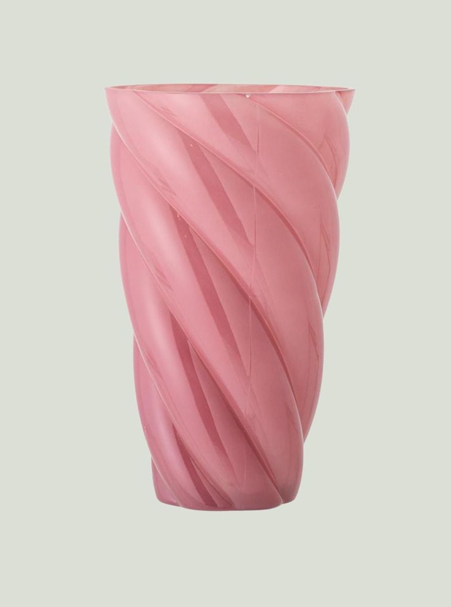 Wazon Callo firmy Bloomingville, dmuchany ustami w efekt spirali, tworzy nowoczesny i ekspresyjny design. Spiralna sylwetka wazonu i miękki, różowy odcień przyczyniają się do pięknego i dekoracyjnego wykończenia. Efekt spirali dodaje głębi i wrażenia ruchu, dzięki czemu idealnie nadaje się do eksponowania ulubionych kwiatów lub jako samodzielne artystyczne oświadczenie. D17xH29 cm