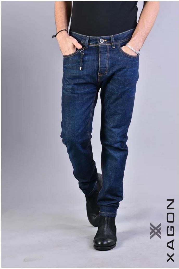 Zapinane na cztery, logowane guziki Dopasowany fason Dopasowane, zwężane nogawki Średni stan Z przodu trzy kieszenie, z tyłu dwie Stebnowane rudą nicią Z klasycznymi wytarciami Przy szlufkach odpinany wisior Wykonane z wysokiej jakości denimu Z dodatkiem streczu Wyprodukowano we Włoszech