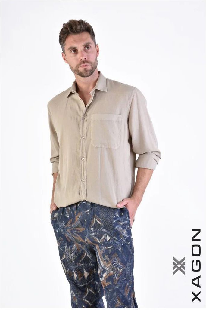 Prosty fason Ten prosty fason idealnie sprawdza się zarówno w codziennych, jak i bardziej formalnych stylizacjach, dodając elegancji i klasy każdemu, kto go nosi. Z kołnierzykiem Z kołnierzykiem, który dodaje szczyptę wyrafinowania i sprawia, że całość wygląda bardziej elegancko, jednocześnie zachowując komfort noszenia. Mankiety zapinane na guziki Mankiety zapinane na guziki to praktyczne rozwiązanie, które umożliwia łatwe dostosowanie szerokości rękawów do indywidualnych potrzeb, zapewniając wygodę przez cały dzień. Z lewej strony kieszeń Z lewej strony kieszeń dodaje funkcjonalności i stylu, pozwalając na przechowywanie drobnych przedmiotów, takich jak telefon czy długopis, w zasięgu ręki. Wykonana z wysokiej jakości tkaniny z dodatkiem lnu Wykonana z wysokiej jakości tkaniny z dodatkiem lnu, zapewnia nie tylko wyjątkową trwałość, ale także przewiewność i komfort noszenia, idealne na ciepłe dni.