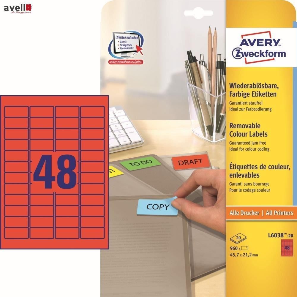 Avery Zweckform Etykiety A4 Usuwalne 45,7mm x 21,2mm Czerwone L6038-20 (65401) Stalowa Wola