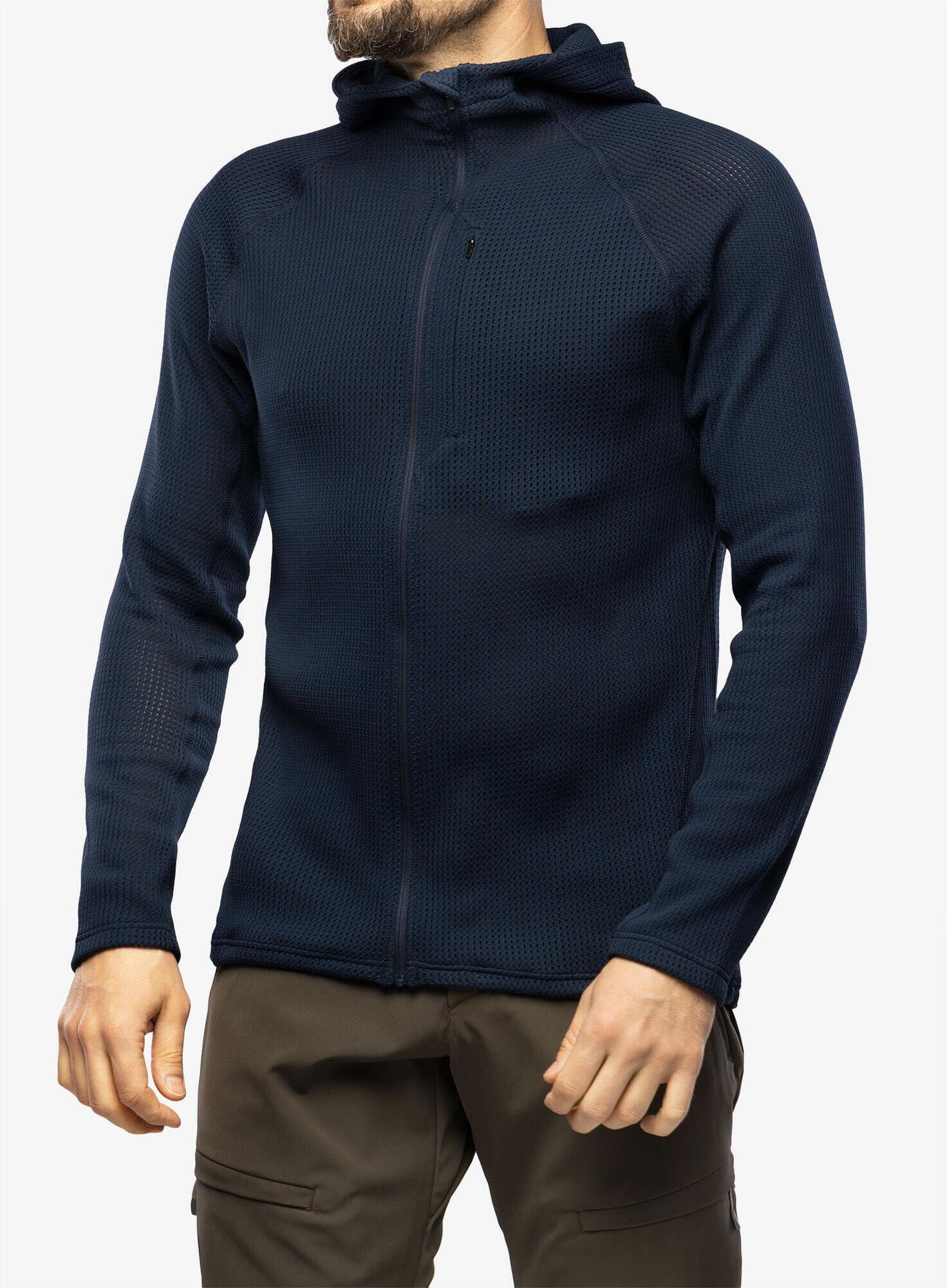 Bluza biegowa męska Houdini Pace Flow Houdi - big blue jest charakterystyczną warstwą pośrednią, która odpowiada za docieplenie i odprowadzanie wilgoci z powierzchni skóry. Jej walory wykorzystasz w trakcie biegania, jazdy na rowerze lub turystyki w terenie. Bluza do biegania Houdini Pace Flow Houdi - big blue składa się z recyklingowanej tkaniny Polartec® Power Dry® Mesh. Posiada ona charakterystyczną perforowaną strukturę, która jednocześnie oddycha i zachowuje ciepło wokół skóry. Zaletą bluzy męskiej Houdini Pace Flow Houdi - big blue jest jej krój, który dokładnie współpracuje z każdym ruchem ciała. Posiada ona delikatnie przedłużony i wyprofilowany panel tylny, który zwiększa poziom krycia. Dodatkowo na klatce piersiowej usytuowano kieszeń zapinaną suwakiem. Bluza Houdini Pace Flow Houdi - big blue - najważniejsze cechy:Krój Regular fit;Przeznaczona do biegania, jazdy na rowerze, turystyki pieszej i trekkingu;Uszyta z tkaniny Polartec® Power Dry® Mesh;Tkanina pochodzi w całości z recyklingu;Certyfikat bluesign®;Wysokie właściwości oddychające;Sprawny proces zarządzania wilgocią;Zintegrowany dopasowany kaptur;Elastyczne mankiety;Przedłużony panel tylny;1 kieszeń na piersi zapinana zamkiem.