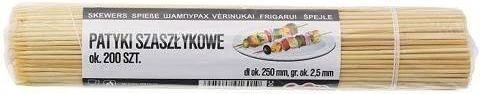 ⭐DŁUGIE BAMBUSOWE PATYCZKI DO SZASZŁYKÓW GRILL BBQ - 200 SZT⭐ . ✅ Spis treści 1️⃣ Bambusowe patyczki do szaszłyków 2️⃣ Dlaczego warto wybrać zestaw 200 bambusowych patyczków do szaszłyków 3️⃣ DANE TECHNICZNE 1️⃣ Bambusowe patyczki do szaszłyków Patyczki bambusowe do szaszłyków to praktyczny i niezastąpiony produkt w każdej kuchni. Oferowany przez nas zestaw składa się aż z 200 sztuk patyczków o wymiarach 250x2,5 mm. Ostre zakończenia patyczków ułatwiają nabijanie mięs oraz warzyw, natomiast proste zakończenie zapobiega spadaniu nabitych elementów z szaszłyka. Patyczki zostały wykonane z wysokiej jakości drewna bambusowego. 2️⃣ Dlaczego warto wybrać zestaw 200 patyczków do szaszłyków Zestaw składa się aż 200 bambusowych patyczków do szaszłyków, Ostre zakończenie patyczka uławia nabijanie produktów, Patyczki zostały wykonane z wysokiej jakości drewna bambusowego. 3️⃣ DANE TECHNICZNE Liczba sztuk 200 Długość patyczka 25 cm Materiał drewno bambusowe