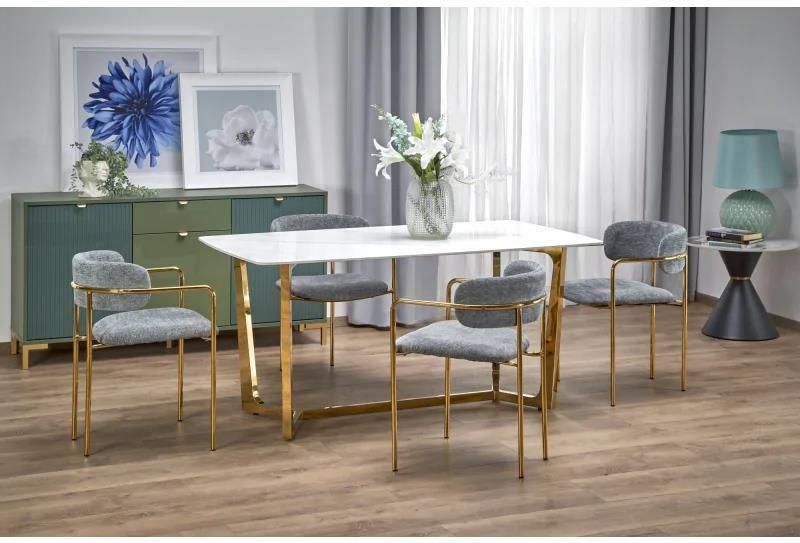 Halmar Clemente Stół Blat Biały Marmur Nogi Złoty Prostokątny Glamour 4/6 Osobowy Stalowa Wola