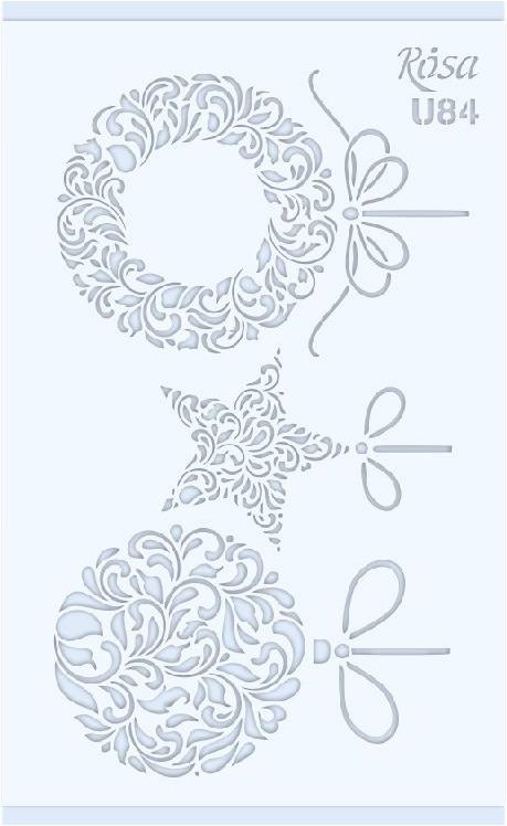 Szablon wykonany jest z półprzezroczystego trwałego i elastycznego tworzywa sztucznego. Idealnie sprawdzi się do tworzenia kolaży, rysunków oraz dekoracji na różnych przedmiotach. Można go także wykorzystywać do ozdabiania tkanin. Bardzo łatwo można wyczyścić go szmatką i dzięki temu, wielokrotnie używać. Wzór przedstawiający bombki, xmas Z tworzywa o grubości 0,5 mm Wielokrotnego użytku