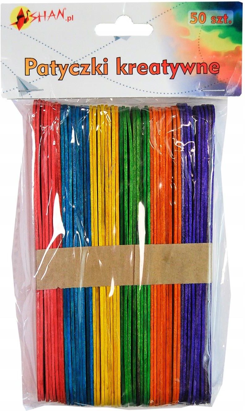 Patyczki kreatywne drewniane kolorowe 15 cm 50 szt Stalowa Wola