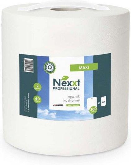 Ręcznik papierowy Nexxt Maxi - 2-Warstwowy Ręcznik papierowy w rolce MAXI to idealne rozwiązanie dla tych, którzy cenią sobie doskonałą dbałość o czystość w każdym domu czy miejscu pracy. Papier ten charakteryzuje się niezwykłą wydajnością, oferując aż 60 metrów długości i 300 listków w jednej rolce. Dwie warstwy wykonane z czystej celulozy zapewniają skuteczną chłonność płynów i komfort użytkowania. Ręcznik papierowy Nexxt Maxi to gwarancja wysokiej jakości, wydajności i komfortu podczas codziennego korzystania. Oferuje skuteczną chłonność, co sprawia, że jest doskonałym wyborem zarówno do zadań domowych, jak i profesjonalnych. Główne cechy produktu: Materiał: Celuloza Kolor: Biały Gramatura: 2x18g/m2 Liczba Warstw: 2 Liczba Listków: 300 Długość Rolki: 60m Ilość rolek: 1 Dodatkowe informacje: Doskonała wydajność i trwałość Dwie warstwy 100% celulozy Chłonność płynów Długa rolka, zawierająca 60 metrów papieru Odpowiedni do codziennego użytkowania w domu czy miejscu pracy