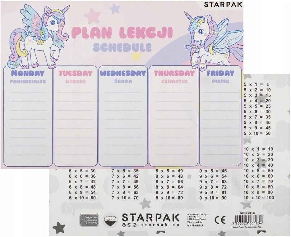 Starpak Plan Lekcji Z Tabliczką Mnożenia A5 Unicorn 536139 Stalowa Wola