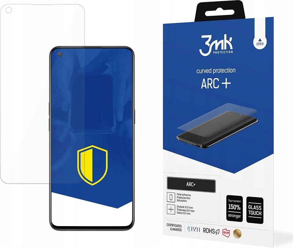 3mk ARC+ W komplecie 2 sztuki Najlepsza folia ochronna na zaokrąglony ekran dopasowana do modelu , doskonale przylega do wyświetlacza dzięki montażowi Semi-Wet, wzmacnia ekran o 150%, powłoka Self-Heal™ samoregeneruje powstałe zarysowania, tylko 0,17 mm grubości, idealnie odzworowane barwy i doskonała klarowność, kompatybilna z czytnikiem linii papilarnych w ekranie, zapewnia idealny poślizg palca, bezpieczna - atest PZH, certyfikat RoHS, wyprodukowana w Polsce. Ochrona na zaokrąglony ekran Zakrzywiony wyświetlacz to prawdziwe wyzwanie dla projektantów folii i szkieł. Zdarza się, że ochrona odkleja się bądź odstaje, przez co zabezpiecza słabiej. Rozwiązanie? Folia ARC+™ zaprojektowana ze szczególnym uwzględnieniem potrzeb zaokrąglonych ekranów. Folia jest kompatybilna ze wszystkimi etui 3mk. Semi-Wet Installation Dlaczego postawiliśmy na instalację z wykorzystaniem żelu montażowego? Po pierwsze, ten sposób pozwoli Ci osiągnąć doskonały efekt: z łatwością zamontujesz folię, folia przylega perfekcyjnie do urządzenia, nawet na krawędziach i nie odkleja się. Możesz także łatwo zmieniać ustawienie folii na wyświetlaczu podczas montażu. Folia ARC+™ ma półprzepuszczalną strukturę, która umożliwia znikanie bąbelków powietrza w ciągu maksymalnie 48h – jeśli po montażu zostały pęcherzyki powietrza wystarczy cierpliwość. Ekran mocniejszy o 150% Cenisz ochronę, która zwiększy bezpieczeństwo wyświetlacza, a jednocześnie pozostanie niewidoczna? ARC+™ jest rozwiązaniem, które spełnia oba te warunki. Zaledwie 0,17 mm grubości i wzmocnienie ekranu aż o 150%, dzięki czemu niestraszne Ci będą zarysowania i uderzenia. Perfekcyjna transparentność Boisz się, że gdy nakleisz folię, nasycenie kolorów albo ostrość ulegną pogorszeniu? Zupełnie niepotrzebnie! Struktura folii zadba o zachowanie rzeczywistej kolorystyki wyświetlanych treści. Folia ARC+™ to gwarancja idealnie odwzorowanych barw na ekranie i doskonałej klarowności! Self-Heal Aby folia ARC+™ była jeszcze bardziej praktycznym rozwiązaniem, zastosowaliśmy w niej powłokę Self-Heal™. Folia samoregeneruje drobne zarysowania i uszkodzenia w ciągu 24 godzin. Korzystanie z ochrony jest maksymalne komfortowe, bo cieszysz się idealnie gładką folią jeszcze dłużej! Kompatybilna z czytnikiem Szukasz ochrony, która będzie wspierała czytnik linii papilarnych w Twoim telefonie? ARC+™ to świetny wybór: folia ma jednolitą, gładką powierzchnię wrażliwą na dotyk. Zapewnia skuteczne odblokowywanie ekranu i doskonałą responsywność. Wyjątkowa wygoda na wyciągnięcie ręki! Posiada atest PZH Eksperyment badawczy dscout pokazał, że przeciętny użytkownik trzyma telefon w dłoni niemal 2,5 godziny dziennie. ARC+™ posiada atest Państwowego Zakładu Higieny, co gwarantuje, że jest wolny od substancji szkodliwych i bezpieczny dla zdrowia – niezależnie od tego, ile czasu z telefonem spędzasz. Produkt zgodny z dyrektywą RoHS Zabezpieczając telefony, mamy na uwadze troskę o planetę. ARC+™ przeszedł pozytywnie certyfikację RoHS w niezależnym laboratorium – oznacza to, że jest przyjazny środowisku i mieści się w ścisłych unijnych dyrektywach dotyczących zawartości metali ciężkich i niebezpiecznych substancji (m.in. ołowiu, rtęci czy kadmu). PRODUKT POLSKI – KUPUJ ŚWIADOMIE Podczas codziennych zakupów kierujmy się patriotyzmem konsumenckim. Wybierajmy świadomie polskie produkty. W ten sposób przyczynimy się do uratowania miejsc pracy. Polski produkt w Twoim koszyku to zysk dla rodzimych firm i wsparcie lokalnych budżetów. Kupuj świadomie - Wybieraj PRODUKT POLSKI. Zestaw zawiera 2x ARC+™ (na ekran), 2x żel do montażu Semi-Wet, niepyląca ściereczka, 2x nawilżona ściereczka, Anti-Bubble Card™, opakowanie. W naszej ofercie na Allegro możesz kupić również inne produkty 3mk szkła hartowane (3mk HardGlass, 3mk HardGlass Max Lite), wzmocnione szkła hartowane (3mk HardGlass Max), prywatyzujące szkła hartowane (3mk HardGlass Max Privacy), szkła kompozytowe najtrwalsze na rynku (3mk NeoGlass), szkła hybrydowe o niepękającej strukturze (3mk FlexibleGlass, 3mk FlexibleGlass Lite, 3mk FlexibleGlass Max, 3mk FlexibleGlass Edge), antyuderzeniowe folie ochronne (3mk SilverProtection+, 3mk ARC+), antymikrobowe folie ochronne (3mk SilverProtection+), przeźroczyste etui na telefon (3mk Clear Case), pancerne etui na telefon amortyzujące uderzenia (3mk Armor Case), personalizowane etui na telefon z własnym zdjęciem (3mk Armor Case i 3mk Satin Armor Case z własnym zdjęciem), etui na telefon z nadrukiem 3D, dostępne ponad 50 wzorów (Ferya by 3mk), matowe etui w pięknych kolorach (3mk Matt Case), etui na telefon z satynową ramką poprawiającą chwyt (3mk Satin Armor Case), szkła na obiektyw aparatu (3mk Lens Protection), szkła ochronne na ekran tabletu (3mk FlexibleGlass, 3mk FlexibleGlass Lite), szkła ochronne na ekran nawigacji i kamer (3mk FlexibleGlass, 3mk Cam Protection), folie i szkła na smartwatche (3mk Watch Protection), filtry prywatyzujące na MacBooki (3mk PRIVACY), pierścienie ochronne na obiektyw aparatu (3mk Camera Protective Ring), zaślepki prywatyzujące (3mk Privacy Slider), zestawy czyszczące (3mk Care Set, 3mk Care Wipe).