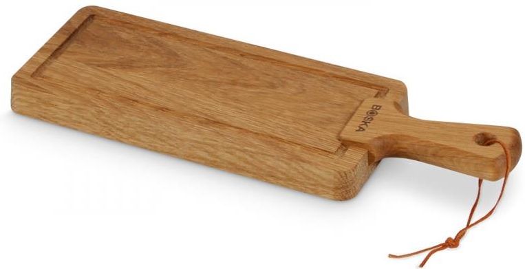 DESKA do SERWOWANIA SERA Boska Friends S dębowa PREZENT 8713638032078 Deska do serów Boska Friends S Elegancka dębowa deska do serwowania przekąsek o długości 30 cm! Deska ma wprost wymarzony kształt do serwowania przekąsek z sera, które prezentują się na niej po królewsku. Grubość deski to aż 2 cm, całkowita długość 30 cm a szerokość 10 cm Powierzchnia do serwowania to 19,2 cm na 7,4 cm! wygodny, dobrze wyprofilowany uchwyt ułatwia przenoszenie deski Przed pierwszym użyciem deskę należy solidnie naoliwić, pozwolić by drewno chłonęło olej przez kilka dni. Potem czynność należy powtarzać co jakiś czas. Deskę myjemy ręcznie z dodatkiem łagodnych detergentów. Wymiary deski Boska grubość 2 cm długość 30 cm szerokość 10 cm powierzchnia do serwowania to 19,2 cm na 7,4 cm Marka: Boska (Holandia) Linia: Friends BO-320092