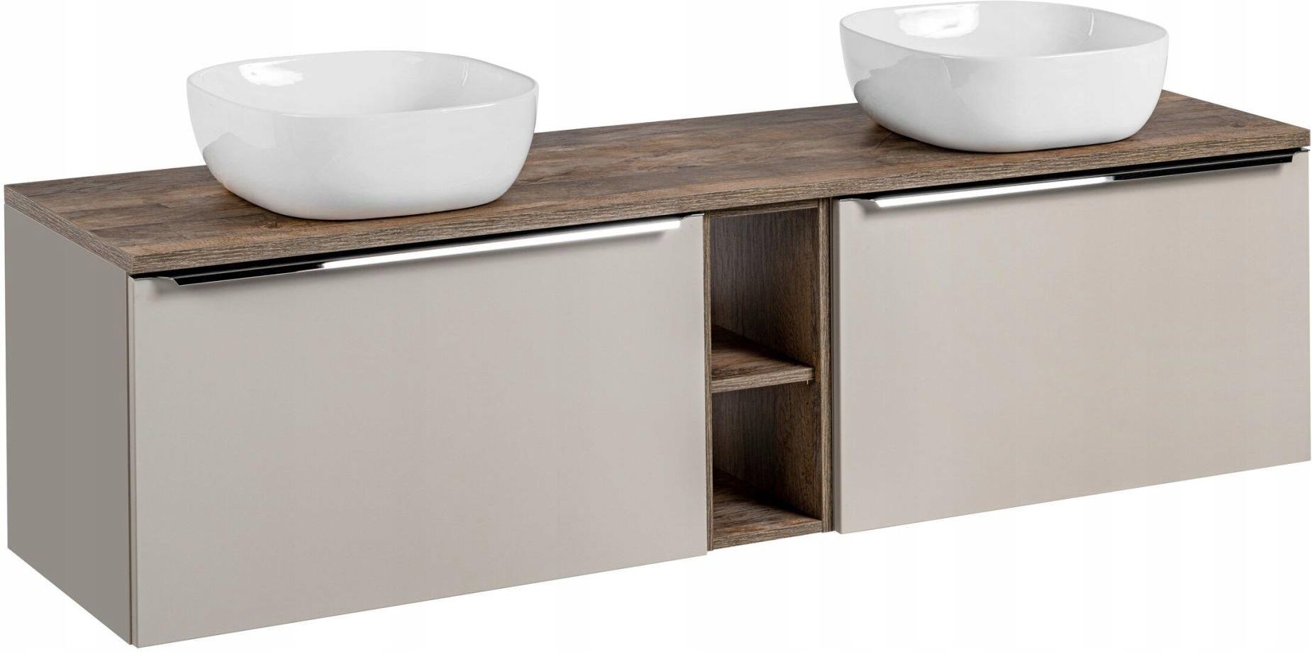 Kupując od nas - kupujesz produkt bezpośrednio od Polskiej firmy tyletegotu. Każdego dnia dokładamy starań aby nasze usługi, jak również produkty w ofercie były najwyższej jakości - setki pozytywnych opinii potwierdzają że można i warto! Dziękujemy że nas wybieracie. SZAFKA ŁAZIENKOWA Z UMYWALKĄ DO ŁAZIENKI Santa Fe 180x46x46 cm Szafka łazienkowa z umywalką, Santa Fe, 180x46x46 cm, beżowy, mat. Niezwykle efektowna szafka łazienkowa z ergonomicznym układem funkcjonalnym. Dzięki nowoczesnemu, a jednocześnie uniwersalnemu stylowi pozwala na dużą swobodę w aranżacji. Dedykowany mebel idealnie sprawdzi się w każdej łazience, nie zajmując przy tym zbyt wiele przestrzeni. Najważniejsze cechy szafki łazienkowej z umywalką: Nowoczesna konstrukcja Wysoka jakość wykonania Innowacyjne rozwiązanie kolorystyczne Bardzo funkcjonalna Praktyczne szuflady Zintegrowane uchwyty Funkcja cichego domyku Idealne uzupełnienie każdej łazienki Meble produkowane w Polsce Instrukcja montażu w przesyłce Wymiary: Szerokość szafki: 80 cm Wysokość szafki: 46 cm Głębokość szafki: 45,6 cm Szerokość blatu: 180,4 cm Wysokość blatu: 2,5 cm Głębokość blatu: 46 cm Szerokość regału: 20 cm Wysokość regału: 46 cm Głębokość regału: 44 cm Szerokość umywalki: 41 cm Wysokość umywalki: 15 cm Głębokość umywalki: 41 cm W skład zestawu wchodzi: 2x szafka wisząca pod umywalkę 1x blat łazienkowy 1x regał 2x umywalka Dodatkowe informacje: Meble należy czyścić za pomocą delikatnej ściereczki. Nie stosuj silnych środków myjących Meble do samodzielnego montażu. W opakowaniu instrukcja montażu oraz wszystkie niezbędne elementy