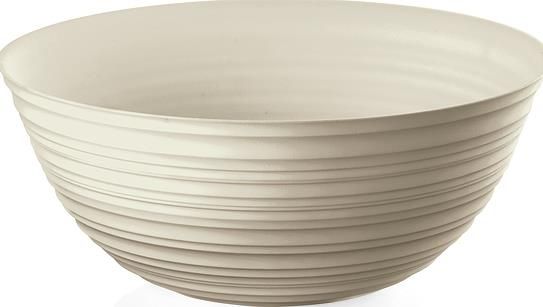 Tierra, stworzona dla natury. Tierra, zrównoważona kolekcja zaprojektowana przez Pio&Tito Toso to rewolucja w zakresie namacalnego uroku i stylu, wyrażająca całą wiedzę firmy, która zawsze przetwarzała tworzywa sztuczne, a teraz robi to, chroniąc środowisko i tworząc piękno na stole dzięki opatentowanym całkowicie poddanym recyklingowi i nadającym się do recyklingu materiałom o ulepszonych właściwościach funkcjonalnych. Projekt i kolory przywodzą na myśl ceramikę toczoną na kole, co daje atrakcyjny, czarujący wygląd ręcznie robionego naczynia, inspirowany ciepłem ziemi i natury. Miska z kolekcji Tierra, wykonana w całości z recyklingu 2 butelek PET na wodę pochodzących od konsumentów, symbolizująca rewolucję pod względem materiału i stylu. Celowo nierówne okrągłe dekoracje nadają uderzająco rezonujący wygląd ręcznie robionego. Średnica: 30 cm Wysokość: 12,8 cm Pojemność: 5 l