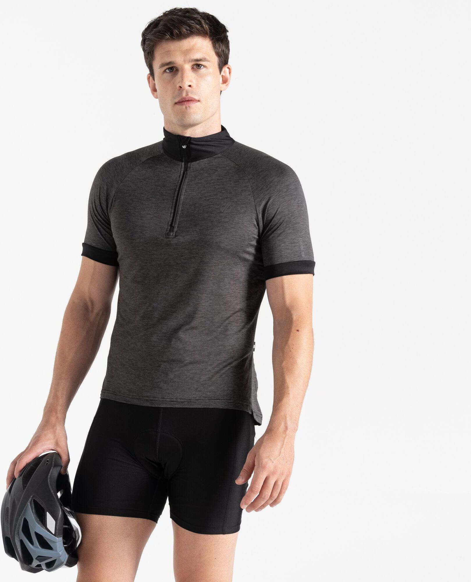 Dare 2b - Męska koszulka rowerowa Pedal It Out II Lekka koszulka kolarska Pedal It Out II. Wykonana z chłodzącej tkaniny Q-Wic, która odprowadza pot i wilgoć, i wyposażona w antybakteryjną kontrolę zapachu, dzięki czemu zapewnia świeżość i suchość. Suwak do połowy długości w razie potrzeby pozwoli się ochłodzić. Wyposażona w trzy kieszenie na plecach do przechowywania niezbędnych rzeczy i odblaskowe elementy zwiększające widoczność. Tkanina bawełniana z recyklingu 92% poliester 8% elastan Zachowaj świeżość dzięki naszemu naturalnemu Q-wic plus, który odprowadza pot, przyspiesza wysychanie i odpycha bakterie powodujące nieprzyjemny zapach. Zamek błyskawiczny z przodu o długości 1/2 z suwakiem z automatyczną blokadą i wewnętrzną osłoną zamka błyskawicznego Wyprofilowany kołnierz Kieszenie z 3 przegródkami z tyłu Długi tył z elastycznym dołem Pozostań widoczny dzięki odblaskowym nadrukom