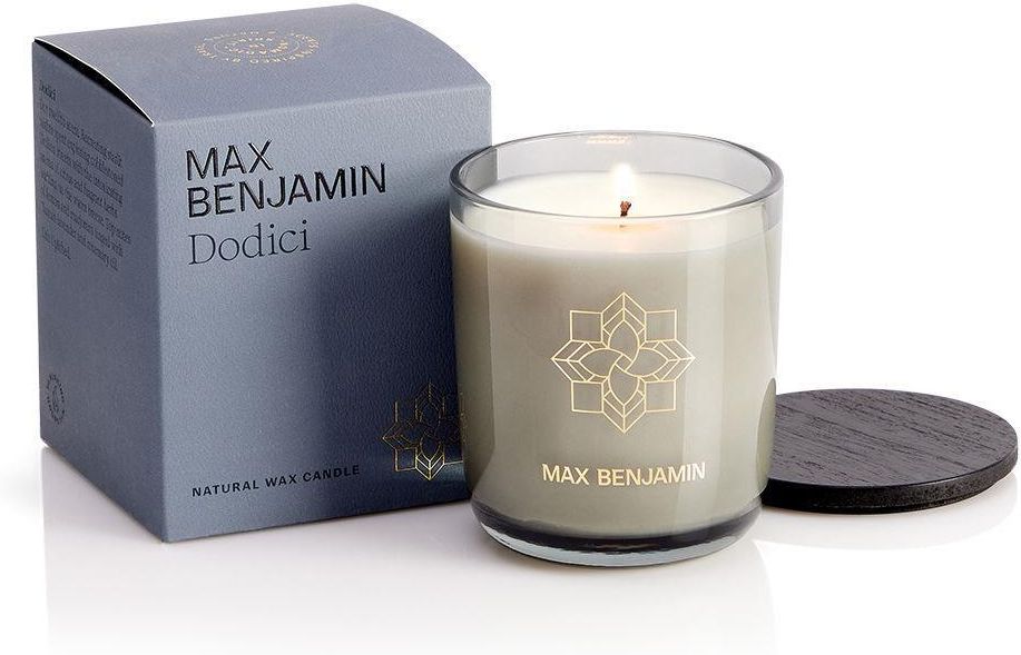 Świeca zapachowa sojowa Dodici - Max Benjamin Zapach Dodici to odtwarzenie rozgwieżdżonych nocy spędzonych na odkrywaniu brukowanych sycylijskich uliczek z odurzającym aromatem cytrusów i pachnących ziół unoszących się na ciepłym wietrze. Nuty głowy - cytryny i majeranku zabarwione toskańską …