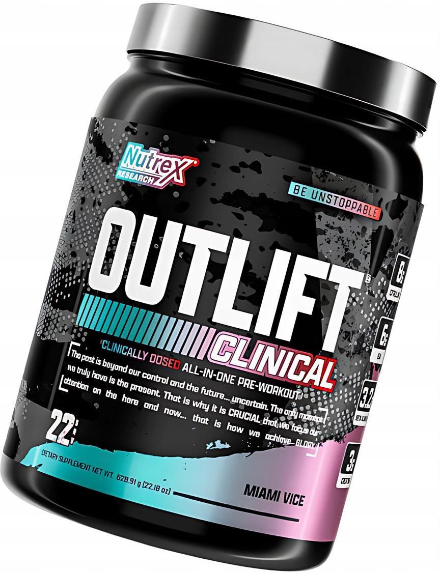 PRZEDTRENINGÓWKA OUTLIFT CLINICAL NUTREX POMPA SIŁA MOC POBUDZENIE OPAKOWANIE: 380g SMAK: MIAMI VICE OUTLIFT CLINICAL NUTREX OUTLIFT CLINICAL Nutrex to zaawansowany przedtreningowy suplement diety, stworzony z myślą o maksymalizacji wyników sportowych. Produkt ten zawiera składniki o udowodnionym działaniu, w klinicznych dawkach, aby zapewnić wzrost siły, wytrzymałości, pompę mięśniową i skupienie. Formuła OUTLIFT CLINICAL została opracowana, aby wspierać każdy aspekt treningu, od energii po regenerację. Jest to kompleksowe rozwiązanie dla osób dążących do przekraczania swoich limitów. ZALETY STOSOWANIA Zwiększa siłę mięśniową i moc, pozwalając na podnoszenie większych ciężarów. Poprawia wytrzymałość mięśni, umożliwiając dłuższe i intensywniejsze treningi. Zapewnia intensywną pompę mięśniową, poprawiając ukrwienie mięśni. Zwiększa skupienie i koncentrację podczas ćwiczeń. Wspiera regenerację mięśni po wysiłku. DLA KOGO JEST PRZEZNACZONY? OUTLIFT CLINICAL Nutrex jest przeznaczony dla osób dorosłych, uprawiających sporty siłowe i wytrzymałościowe, które dążą do maksymalizacji swoich osiągnięć treningowych. Szczególnie polecany jest zaawansowanym sportowcom, którzy oczekują silnego i kompleksowego wsparcia podczas intensywnych sesji treningowych. Produkt ten nie jest zalecany dla osób początkujących oraz wrażliwych na stymulanty. INFORMACJE ŻYWIENIOWE OUTLIFT CLINICAL Nutrex zawiera składniki aktywne w klinicznych dawkach, m.in.: cytrulinę, BCAA (aminokwasy rozgałęzione), beta-alaninę, monohydrat kreatyny, taurynę, kofeinę, ekstrakty roślinne oraz elektrolity. Dokładny skład i wartości odżywcze, w tym zawartość poszczególnych witamin i minerałów (jeśli występują), znajdują się na etykiecie produktu. Składniki te działają synergistycznie, wspierając wydolność fizyczną i regenerację. SPOSÓB UŻYCIA Zaleca się spożycie jednej miarki (porcji) OUTLIFT CLINICAL Nutrex rozpuszczonej w wodzie na 20-30 minut przed treningiem. Nie należy przekraczać zalecanej porcji do spożycia w ciągu dnia. Ze względu na zawartość stymulantów, zaleca się ocenę tolerancji organizmu, zaczynając od mniejszej dawki. SKŁADNIKI Skład może się różnić w zależności od smaku. Zazwyczaj zawiera: L-Cytrulina, BCAA (L-Leucyna, L-Izoleucyna, L-Walina), Beta-Alanina, Monohydrat Kreatyny, Tauryna, Kofeina Bezwodna, Ekstrakt z Korzenia Buraka Czerwonego, N-Acetylo-L-Tyrozyna, Ekstrakt z Owoców Pieprzu Czarnego (Piper Nigrum), Elektrolity (Sód, Potas, Magnez). Dokładny skład znajduje się na opakowaniu produktu. ŚRODKI OSTROŻNOŚCI Suplement diety/dietetyczny środek specjalnego przeznaczenia żywieniowego dla osób aktywnych fizycznie, w tym sportowców. Produkt nie może być stosowany jako zamiennik bądź substytut zróżnicowanej diety. Zalecany jest zrównoważony sposób żywienia i zdrowy tryb życia. Nie należy przekraczać zalecanej dziennej porcji do spożycia. Najlepiej spożyć przed końcem: data na spodzie lub boku opakowania. Produktu nie należy podawać matkom karmiącym oraz kobietom w ciąży. Nie spożywać w przypadku uczulenia na którykolwiek ze składników produktu. Przechowywać w miejscu niedostępnym dla małych dzieci. Przechowywać w suchym miejscu, w temperaturze pokojowej do 25°C, w szczelnie zamkniętym opakowaniu. Chronić przed bezpośrednim działaniem promieni słonecznych. PRZECHOWYWANIE Przechowywać w temperaturze pokojowej. Chronić przed wilgocią. Przechowywać w sposób niedostępny dla małych dzieci.