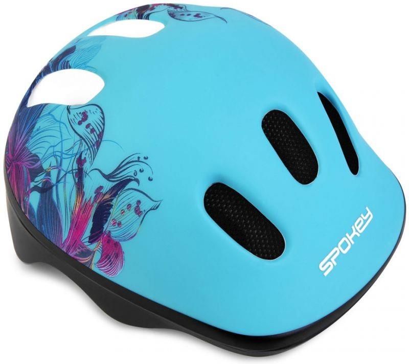 Kask rowerowy dla dzieci Spokey Florist 44-48 cm 927772 Właściwości Kask dla dzieci Spokey sprawdzi się w czasie jazdy na rowerze, deskorolce, hulajnodze, czy rolkach. Model w niebieskim kolorze zyskał ciekawą, kwiatową grafikę. Lekka i trwała konstrukcja. Zapięcie w postaci sprzączki. System Head-Lock umożliwia idealne dopasowanie obwodu kasku do głowy dziecka. Model zaprojektowany w taki sposób, aby dodatkowo chronić czoło oraz potylicę. System wentylacji w postaci 6 otworów z siatką przeciw owadom. Model uzyskał certyfikat CE, EN 1078. Dane techniczne · regulacja: Head Lock 44-48 cm · doskonała ochrona potylicy i czoła · powłoka zewnętrzna: PVC · warstwa wewnętrzna: EPS · szybkie zapięcie pod szyją · liczba otworów wentylacyjnych: 6 + siatka · certyfikat: CE, EN 1078