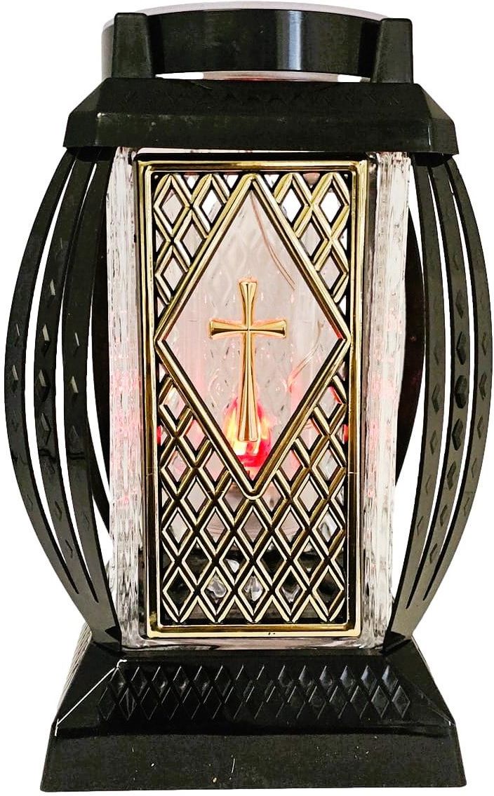 Znicz Solarny Na Grób Szklany Led Złoty 26X17cm Stąporków