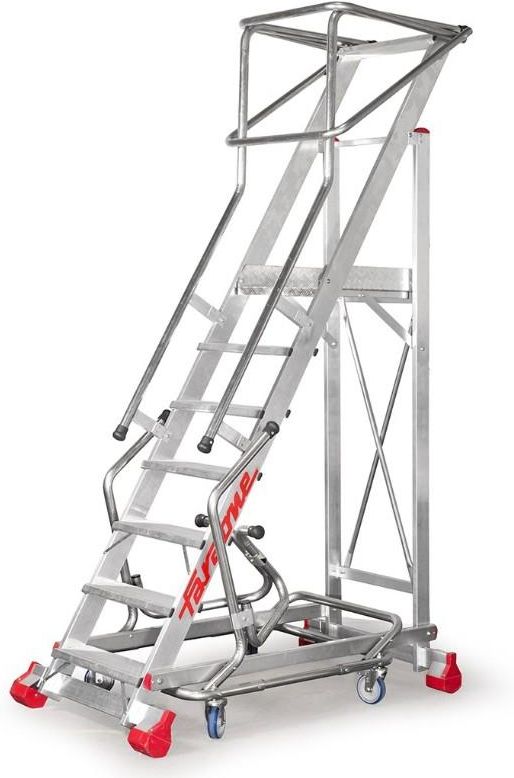 Wybierz inną wysokość roboczą: 100/MFTS Drabina 4 st. wysokość robocza: 2,96m 125/MFTS Drabina 5 st. wysokość robocza: 3,20m 150/MFTS Drabina 6 st. wysokość robocza: 3,44m 200/MFTS Drabina 7 st. wysokość robocza: 3,69m 250/MFTS Drabina 8 st. wysokość robocza: 3,93m 275/MFTS Drabina 9 st. wysokość robocza: 4,17m 300/MFTS Drabina 10 st. wysokość robocza: 4,41m 325/MFTS Drabina 11 st. wysokość robocza: 4,65m 350/MFTS Drabina 12 st. wysokość robocza: 4,89m 375/MFTS Drabina 13 st. wysokość robocza: 5,13m 400/MFTS Drabina 14 st. wysokość robocza: 5,40m 450/MFTS Drabina 15 st. wysokość robocza: 5,64m FARAONE Podest / drabina magazynowa przejezdna 15 stopniowa wys. rob. 5,64m 450/MFTS Charakterystyka produktu: Mobilny podest, łatwy w przemieszczaniu za pomocą zestawu SICUR STOP, który umożliwia przemieszczanie podestu na 4 kółkach. Drążek zabezpieczający uniemożliwia wejście, kiedy drabina stoi na kółkach, gotowa do przemieszczenia. Wejście z nachyleniem 60 stopni z szerokimi stopniami 15 cm, co ułatwia komfortowe wejście. Posiada pionową tylną część, dzięki czemu można go ustawić prostopadle do regału. Wyposażony w barierki zabezpieczające przed wypadnięciem. Podest wyprodukowany wg normy EN 131 oraz zgodnie z wieloletnią wiedzą inżynierską firmy Faraone Poland Sp. z o. o. Podłużnice drabiny wykonane zostały z wytrzymałych profili aluminiowych o przekroju 100 x 100 mm. Zastosowano solidne krzyżowe stabilizatory w elemencie tylnym. Platforma robocza z grubej, perforowanej blachy. Podstawa stabilizująca wykonana z belki aluminiowej, zakończonej stopami antypoślizgowymi z tworzywa o wysokiej przyczepności. Dane techniczne: Wysokość robocza w zależności od modelu 300 – 569 cm Maksymalne obciążenie 150 kg Kąt nachylenia schodów 60 stopni Stopnie o głębokości 15 cm Platforma robocza o wymiarach 52 x 62 cm Wykonany z aluminium Nr katalogowy: 450/MFTS REALIZACJA ZAMÓWIENIA OD 7 DO 60 DNI