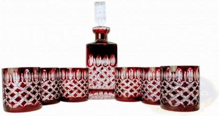 Elegancki kryształowy zestaw, który składa się z dwóch następujących produktów: Kryształowa rubinowa karafka do whiskyElegancka ręcznie malowana i zdobiona kryształowa karafka do whisky.Produkt wykonany jest od początku do końca ręcznie. Już sam jej kształt wydmuchiwany jest przez hutnika, następnie każdy detal poddawany jest ręcznej obróbce przez naszych Mistrzów Zdobienia. Produkt, który Państwu oferujemy wykonany jest z najwyższej jakości szkła kryształowego zawierającego 24% tlenek ołowiu całkowicie bezpieczny dla zdrowia. Pojemność: 700 mlWzór: Krata OliwkaKolor: Rubin Kryształowe rubinowe szklanki do whisky (6 sztuk)Eleganckie ręcznie malowane i zdobione kryształowe szklanki do whisky.Produkt wykonany jest od początku do końca ręcznie.Już sam kształt szklanki wydmuchiwany jest przez hutnika, następnie każda szklanka poddawana jest ręcznej obróbce przez naszych Mistrzów Zdobienia. Szklanki, które Państwu oferujemy wykonane są z najwyższej jakości szkła kryształowego zawierającego 24% tlenek ołowiu całkowicie bezpieczny dla zdrowia.Nowoczesny wzór szklanki pozwala spojrzeć na kryształ z innej strony.Pojemność: 280 mlWysokość: 9,5 cmWzór: Krata OliwkaKolor: Rubin Całość zapakowana jest w eleganckie opakowanie prezentowe wyłożone wewnątrz białym materiałem widocznym na zdjęciach.