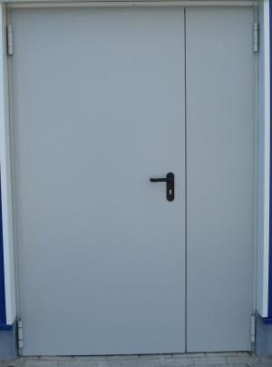 Drzwi stalowe, dwuskrzydłowe bez odporności ogniowej, malowane proszkowo w kolorze RAL 7035 (jasnoszarym). Wymiar w świetle muru: 139x206 cm. Szerokość w świetle ościeżnicy skrzydła czynnego 90 cm. Drzwi dopuszczone do stosowania w budownictwie zarówno jako drzwi wewnętrzne, jak i zewnętrzne …