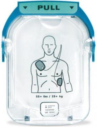 Elektrody terapeutyczne SMART PADS dla dorosłych przeznaczone do defibrylatorów AED PHILIPS HS1. Jednorazowe, samoprzylepne elektrody do defibrylacji o nominalnej, aktywnej powierzchni łącznej 170 cm2. Dostarczane we wkładzie na zatrzask z dołączonym fabrycznie, standardowym kablem o długości 137,1 cm. Przeznaczone dla ratowania osób o masie ciała powyżej 25kg. Okres przydatności - 2 lata.