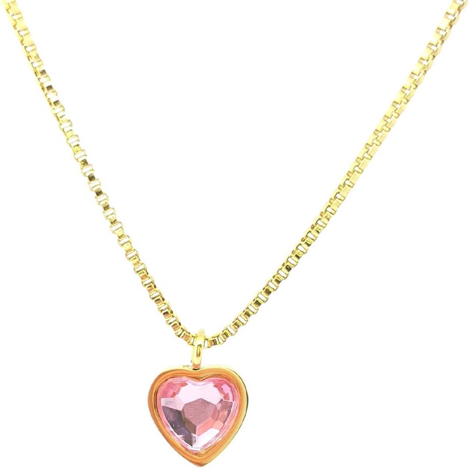 49 Naszyjnik serce z różowym kryształkiem - Pozłacana stal szlachetna Stargard