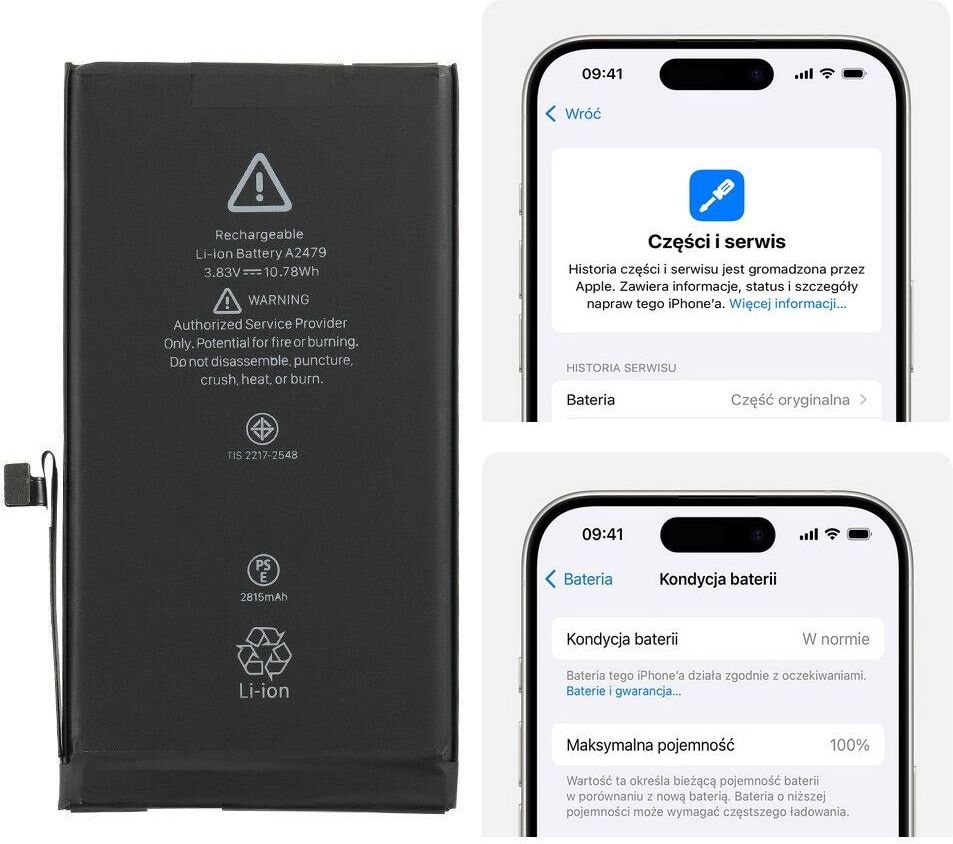 Bateria A2479 akumulator Li-ion 2815mAh Diagnosable z możliwością przypisania jako oryginał do Apple iPhone 12/12 Pro Stargard