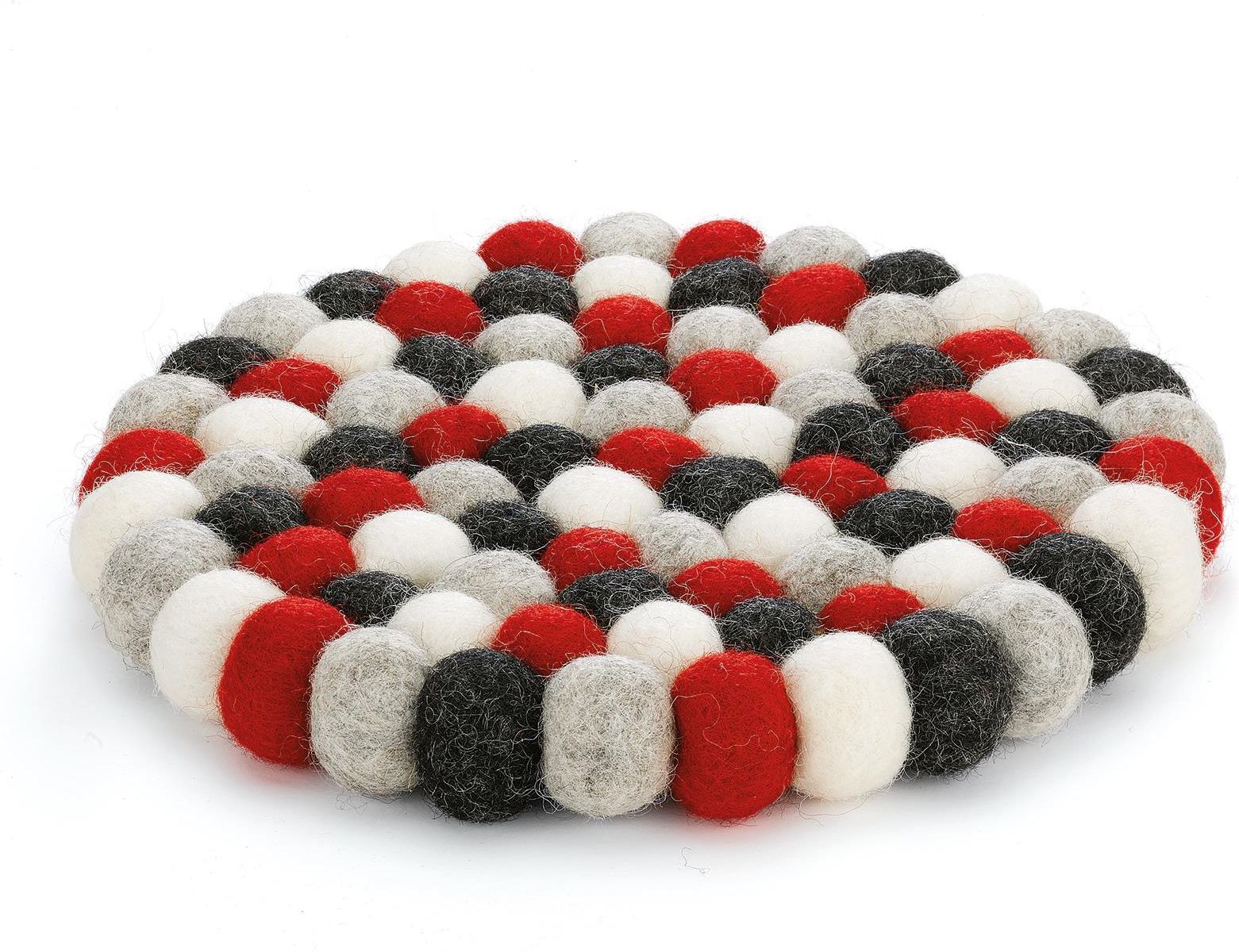 Cilio - podkładka pod gorące naczynia, śred. 21 cm, owcza wełna, czerwona Lana Rosso Ozdobna podkładka pod gorące naczynia wykonana z owczej wełny. - odporna na temperaturę do 100°C - wykonana ręcznie w Nepalu - produkt zgodny ze zrównoważonymi praktykami biznesowymi potwierdzony przez World Fair Trade Organization - do produkcji zatrudnieni są mieszkańcy z miejscowości z okolic Katmandu (80% z nich to kobiety), a ich praca jest sprawiedliwie wynagradzana i odbywa się w godnych warunkach Wymiary: - średnica: 21 cm Materiał: - owcza wełna