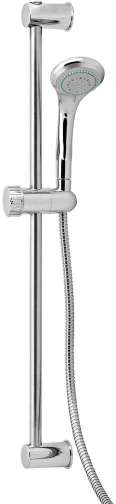 Zestaw prysznicowy chrom 5 strumieni 150cm Stylowy wygląd i aż pięć rodzajów strumienia! Ten kompletny zestaw prysznicowy marki Curaqua zawiera słuchawkę, wąż oraz uchwyt ścienny. Słuchawka prysznicowa jest wykonana z chromowanego tworzywa i oferuje funkcję automatycznego usuwania kamienia (gumowe nasadki odpychające kamień), pięć rodzajów strumienia oraz głowicę natryskową o średnicy 8 cm. Elastyczny wąż ma długość 150 cm i jest wykonany ze stali nierdzewnej. Przyłącze baterii (R15) wykonano ze stali nierdzewnej, a przyłącze słuchawki z chromowanego tworzywa. Dołączony uchwyt ścienny składa się z drążka o długości 70 cm, dwóch mocowań oraz regulowanego uchwytu na głowicę. Uchwyt na słuchawkę można regulować na wysokość, a także przechylać i obracać. Wysokość górnego mocowania również możesz regulować, aby dopasować je do wyglądu ściany pod prysznicem. Drążek wykonano ze stali nierdzewnej, a mocowania i uchwyt z chromowanego tworzywa. W zestawie dwa wkręty, dwa kołki rozporowe i dwie uszczelki. Specyfikacja techniczna Gwarancja (w miesiącach): 12 m. Długość węża: 150 cm