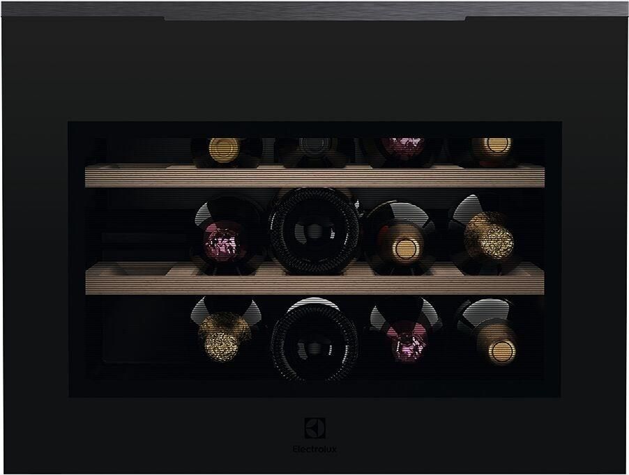 Chłodziarka do wina ELECTROLUX KBW6T NAJWAŻNIEJSZE PARAMETRY Instalacja: BI Wide Door Kolor: czarny + szkło matowe Klasa energetyczna: F Roczne zużycie energii: 100 kWh Pojemność całk. komór chłodzących: 49 L Całkowita pojemność: 49 L Min. temperatura otoczenia: 16 ºC Poziom hałasu: 39 dB(A) WYEKSPONUJ SWOJĄ KOLEKCJĘ. DZIĘKI PERFECT SHELVING Twoja kolekcja win jest wyjątkowa. Podkreśl ją jeszcze bardziej dzięki Perfect Shelving. Umieść swoją kolekcję na półkach zaprojektowanych tak, by idealnie pomieścić wszystkie butelki o pojemności 750 ml, w tym szampana, bez zadrapania etykiet. DOSKONAŁE WARUNKI PRZECHOWYWANIA WINA Dzięki szerokiemu zakresowi temperatury od 5 do 20°C dobierzesz optymalną dla przechowywanego, gatunkowego wina. CHROŃ SWOJE WINA DZIĘKI CELLARING 5 FUNDAMENTALS Stwórz idealne warunki do zabezpieczenia Twoich win i pozwól na ich stabilne dojrzewanie dzięki naszemu Cellaring Pro 5 Fundamentals: stabilności temperatury, automatycznej wilgotności powyżej 50%, ciemnemu miejscu przechowywania, środowisku bez wstrząsów i odpowiedniemu przepływowi powietrza. CHŁODZIARKA DO WINA, KTÓRA DOSKONALE WSPÓŁGRA Z INNYMI URZĄDZENIAMI Elegancka, nowoczesna chłodziarka do wina doskonale komponuje się z innymi urządzeniami, prawidłowo dbając o Twoją kolekcję win. DOSKONAŁA WIDOCZNOŚĆ Oświetlenie LED zapewnia doskonałą widoczność wszystkich etykiet. SPECYFIKACJA TECHNICZNA URZĄDZENIA Typ urządzenia: Chłodziarka do wina Kolor: Czarny + szkło matowe Typ montażu: Do zabudowy – BI Wide Door Położenie zawiasów: Opuszczane Regulacja wysokości: Tak, przód i tył Czynnik chłodniczy: R600a Poziom hałasu (UE 2017/1369): 39 dB(A) Klasa emisji hałasu: C Pobierana moc: 90 W Napięcie zasilania: 220–240 V Długość przewodu zasilającego: 1,8 m FUNKCJE Oświetlenie wnętrza: LED Rodzaj półek: 2 drewniane (połowa szerokości) 1 plastikowa, dolna, pełnej szerokości Typ półek: Drewniane i plastikowa Liczba warstw składowania: 3 Mechanizm otwierania drzwi: Zawias opuszczany Mechanizm zwalniania drzwi: Tak, x2 Prowadnice teleskopowe: Tak Nóżki: Regulowane Tylne kółka: Regulowane WYMIARY I WAGA Wysokość wnęki do zabudowy: 450 mm Wymiary urządzenia (W x S x G): 440 × 554 × 560 mm Waga netto: 28,6 kg Waga brutto: 30,8 kg ZUŻYCIE ENERGII Klasa energetyczna (UE 2017/1369): F Roczne zużycie energii: 100 kWh Całkowita pojemność użytkowa: 49 l Minimalna temperatura otoczenia: 16°C